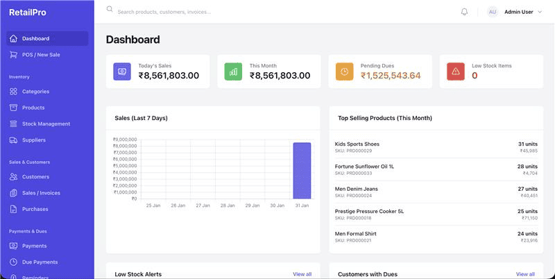 "The dashboard makes it easy to track daily operations and reports without confusion. Everything is well organized and practical for retail use."